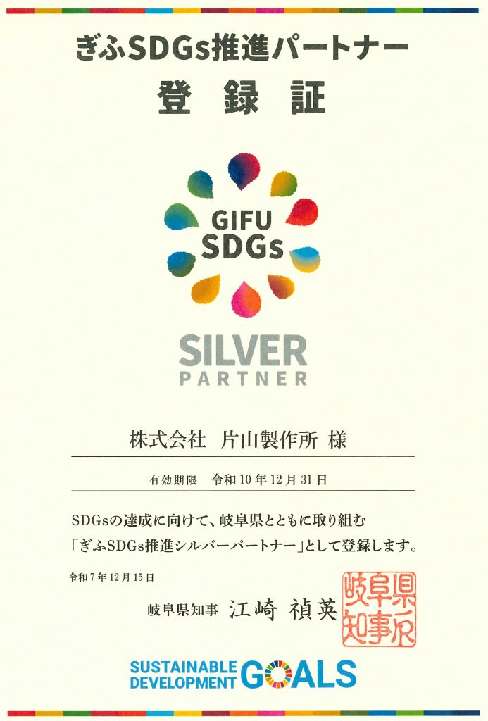 ぎふSDGsパートナー登録制度の登録証授与式にて当社はシルバーパートナーに登録されました。
